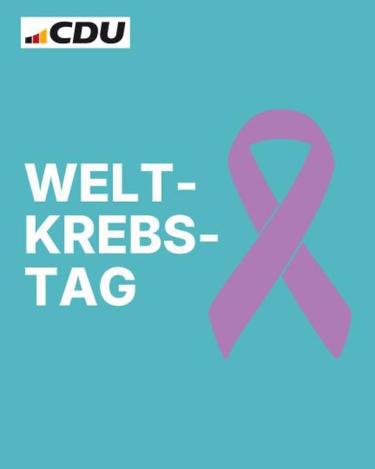 mehrDer Kampf gegen Krebs geht uns alle an! Mehr Bewusstsein, mehr Prävention, mehr Forschung. Dafür machen wir uns auch als CDU stark - und das nicht nur am #Weltkrebstag! 💜 ? Auch dieses Jahr steht er unter dem Motto: "Gemeinsam einzigartig" - denn obwohl alle Krebspatienten eine Diagnose teilen, hat jede und jeder seine eigene Geschichte, eigene Erfahrungen und eigene Bedürfnisse.