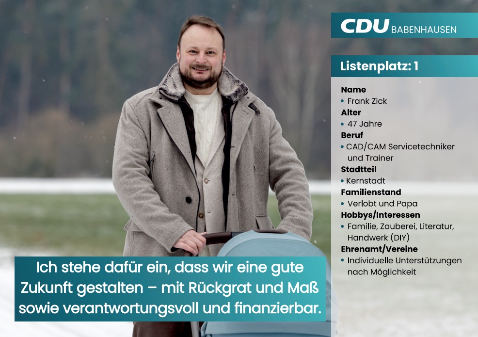 Geben Sie der CDU Babenhausen Ihre Stimme – für eine starke, verlässliche Politik in guten Händen.
