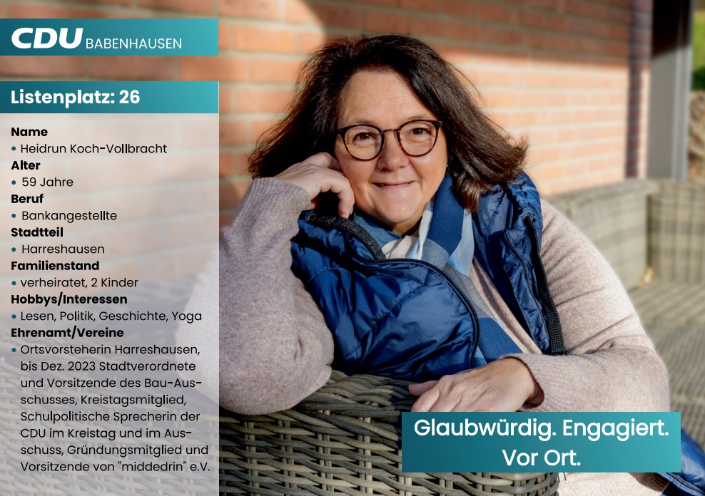 Heute stellen wir Ihnen unsere Kandidatin Heidrun Koch-Vollbracht vor!