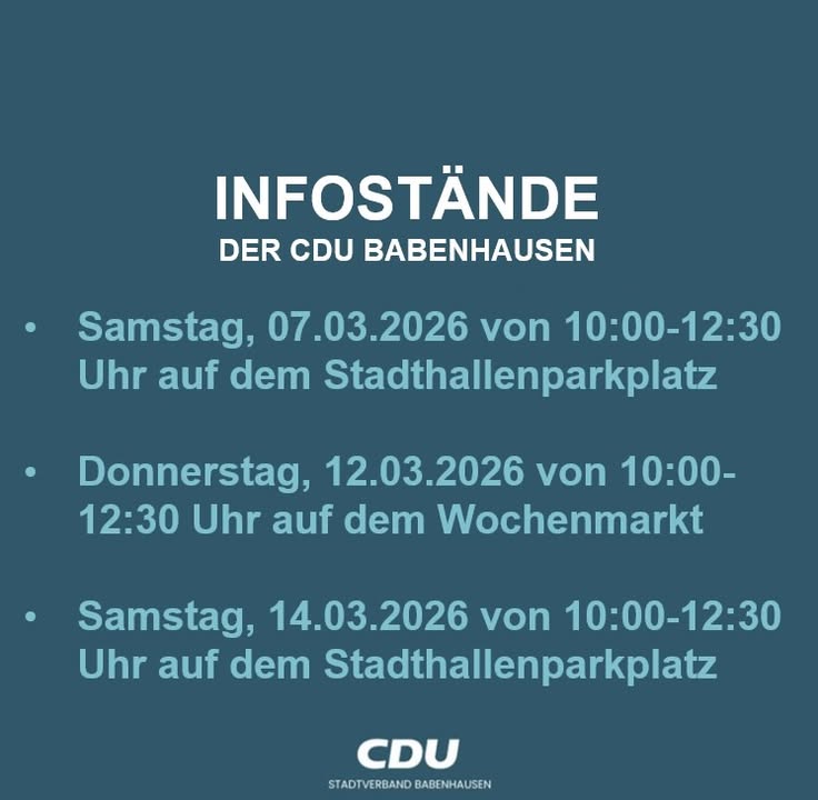 Wir als CDU Babenhausen und all unsere Kandidatinnen und Kandidaten bitten Sie um Ihr Vertrauen am 15. März 2026.