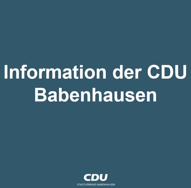 Information der CDU BabenhausenLiebe Bürgerinnen und Bürger Babenhausens,bitte gehen Sie am 15. März wählen. Unabhängig Ihrer politischen Einstellung ist es uns wichtig, dass Sie für unsere Demokratie Ihre Stimme abgeben.Wir als CDU stehen für ein zukunftsorientiertes und wirtschaftlich starkes Babenhausen.Als CDU Babenhausen haben wir in den vergangenen Jahren viel für unsere Stadt mit allen ihren Ortsteilen erreicht. Darauf sind wir stolz und darauf bauen wir auf. Mit klaren Zielen, verlässlicher Politik, Bür¬gernähe und einem starken Miteinander wollen wir diesen erfolgrei¬chen Weg fortsetzen.Erfahren Sie mehr über unsere Ziele in unserem Programm und Leit¬bild zur Kommunalwahl. Was uns verbindet, ist die echte Leidenschaft für unsere Heimat. Der Wille, Verantwortung zu übernehmen. Die Ent¬schlossenheit, gemeinsam anzupacken und Babenhausen mit all seinen Stadtteilen aktiv zu gestalten - heute, morgen und für die kommende Generation. Mit klarem Blick auf unsere Ziele und einem starken Wertekompass stehen wir für gute Entscheidungen, klare Prioritäten und eine starke Gemeinschaft.Unser Ziel ist es, durch eine nachhaltige Finanzpolitik, die langfristige Handlungsfähigkeit und kommunale Selbstverwaltung unserer Stadt zu sichernFamilien sind ein zentraler Bestandteil eines lebendigen Babenhausens. Wir setzen uns für eine familienfreundliche Stadt ein, in der Unterstützung, Wertschätzung und attraktive Angebote selbstverständlich sind. Kinder und Jugendliche brauchen sichere Orte, verlässliche Bildungsangebote und Raum zur Entfaltung. Dafür übernehmen wir Verantwortung in Babenhausen.Eine sichere, nachhaltige Mobilität ist ein zentraler Baustein für Lebensqualität in Babenhausen.Seniorinnen und Senioren sind ein wichtiger Teil des gesellschaftlichen Lebens in Babenhausen. Wir setzen uns für Teilhabe, Selbstständigkeit und soziale Begegnung im Alter ein. Eine verlässliche und wohnortnahe Kinderbetreuung ist Grundlage für Familienfreundlichkeit und Chancengleichheit in Babenhausen.Vereine und ehrenamtliches Engagement sind das Rückgrat des gesellschaftlichen Lebens in Babenhausen und seinen Stadtteilen. Öffentliche Gebäude sind zentrale Orte der Begegnung und des gesellschaftlichen Lebens in Babenhausen und seinen Stadtteilen.Polizei und kommunale Ordnungskräfte schätzen die Bürgerinnen und Bürger vor Kriminalität, Gewalt und treten wirksam der Vermüllung und der Umweltverschmutzung entgegen.Haben wir Interesse geweckt, so besuchen Sie uns auf unserer Website unter www.cdubabenhausen.de und erfahren mehr über unser Programm und Leitbild. Wir als CDU Babenhausen und all unsere Kandidatinnen und Kandidaten bitten Sie, um Ihr Vertrauen am 15. März 2026.
