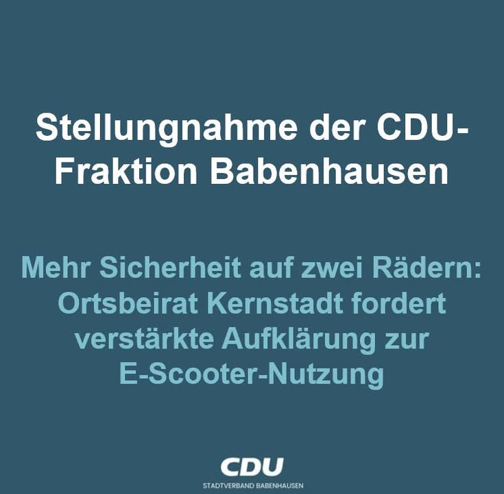 Stellungnahme der CDU-Fraktion BabenhausenMehr Sicherheit auf zwei Rädern: Ortsbeirat Kernstadt fordert verstärkte Aufklärung zur E-Scooter-NutzungImmer schneller, immer riskanter ? das Bild auf den Straßen der Kernstadt hat sich mit dem Boomder E-Scooter deutlich verändert. Was für viele eine praktische und umweltfreundlicheMobilitätsform ist, sorgt zugleich für wachsende Sorgen um die Verkehrssicherheit. Immer wiederwerden zu hohe Geschwindigkeiten, riskante Fahrmanöver und das Fahren zu zweit auf einemScooter beobachtet.Um diesen Entwicklungen entgegenzuwirken, hat der Ortsbeirat Kernstadt in seiner Sitzung am 08.Oktober 2025 auf Antrag von Ortsvorsteherin Monika Heinlein beraten, wie die Sicherheit imStraßenverkehr verbessert werden kann. Ursprünglich war eine verstärkte Kontrolle durch Polizeiund Ordnungsamt vorgesehen. Im Verlauf der Diskussion einigten sich die Mitglieder jedoch darauf,den Fokus stärker auf Aufklärung und Sensibilisierung zu legen ? mit dem Ziel, nicht nur zu ahnden,sondern dauerhaft verantwortungsbewusstes Verhalten und gegenseitige Rücksichtnahme zufördern.Der geänderte Antrag sieht daher vor, den Magistrat gemeinsam mit der Verwaltung, demOrdnungsamt und der Polizei um verstärkte Aufklärungsmaßnahmen hinsichtlich überhöhterGeschwindigkeiten und der Mehrfachnutzung von E-Scootern zu bitten."Viele Menschen sind sich der Risiken gar nicht bewusst ? ein kurzer Moment der Unachtsamkeitoder eine zweite Person auf dem Scooter kann schwerwiegende Folgen haben", betonte Heinlein."Aufklärung ist der Schlüssel, um Unfälle zu verhindern und das rücksichtsvolle Miteinander imStraßenverkehr zu stärken."Der Antrag in seiner geänderten Fassung wurde mit 6 Stimmen dafür, keiner Gegenstimme und 1Enthaltung (Fraktion Bündnis 90/Die Grünen) angenommen.Mit den geplanten Informationskampagnen und gezielten Sensibilisierungsmaßnahmen soll künftigvor allem in stark frequentierten Bereichen ? etwa in der Bummelgasse, auf Schulwegen und entlangder B26 ? für mehr Sicherheit und gegenseitige Rücksichtnahme gesorgt werden.