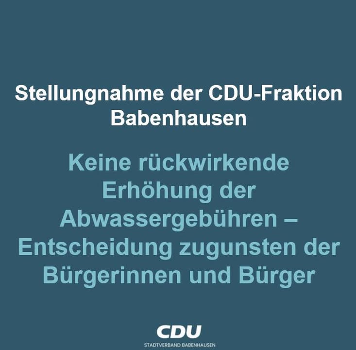 mehrStellungnahme der CDU-Fraktion BabenhausenKeine rückwirkende Erhöhung der Abwassergebühren ? Entscheidung zugunsten der Bürgerinnen und Bürger"Unser Protest gegen die geplante Erhöhung der Abwassergebühren um 51 Prozent war erfolgreich", erklärt Stadtverordneter Günther Eckert, Mitglied im Haupt- und Finanzausschuss. "Die Stadtverordnetenversammlung hat unserem Antrag zugestimmt, auf rückwirkende Gebührennachforderungen ab 2021 vollständig zu verzichten. Das ist ein wichtiges Signal für Fairness gegenüber den Bürgerinnen und Bürgern." Hintergrund ist, dass für das Jahr 2021 rund 370.000 Euro an Nachforderungen entstanden wären. Für die Jahre 2022 und 2023 wäre zusammen ein weiterer Millionenbetrag hinzugekommen. Eckert erläutert: "Da die Haushaltsjahre inzwischen abgeschlossen sind, haben die Bürger diese Beträge längst über andere Steuern und Abgaben ausgeglichen. Eine nachträgliche Belastung wäre schlicht nicht gerecht."Sachlage und Entwicklung:Im Jahr 2021 wurden die Abwassergebühren zuletzt kalkuliert. Für eine vollständige Kostendeckung wäre ein Satz von 3,44 ? pro Kubikmeter erforderlich gewesen. Weil die Bürgerinnen und Bürger seit 2014 jedoch zu viel gezahlt hatten, wurde die Gebühr zum 1. Januar 2022 bewusst auf 2,88 ? gesenkt. "Obwohl bereits damals erkennbar war, dass seit 2019 eine Unterdeckung vorliegt, wurden die Gebühren ab 2023 nicht weiter angepasst", kritisiert Eckert. "So sind Fehlbeträge in Höhe von insgesamt 2,2 Millionen Euro entstanden."Neuer Beschluss gilt ab 2026:Die Stadtverordneten haben nun beschlossen, die Abwassergebühr zum 1. Januar 2026 von derzeit 2,80 ? auf 3,73 ? pro Kubikmeter anzuheben. "Leider fällt die notwendige Erhöhung immer noch recht hoch aus, einfach deswegen, weil der Bürgermeister es versäumt hat, die Gebühren in den Jahren 2022 bis 2025 schrittweise anzupassen", so Eckert. "Immerhin hat er angekündigt, künftig eine jährliche Gebührenprüfung durchführen zu lassen. Das begrüße ich ausdrücklich ? denn so lassen sich starke Schwankungen wie die aktuelle vermeiden." Eckert abschließend: "Wir haben uns von Anfang an gegen rückwirkende Forderungen gestellt ? und wir haben uns durchgesetzt. Das ist eine gute Nachricht für alle Haushalte in unserer Stadt."