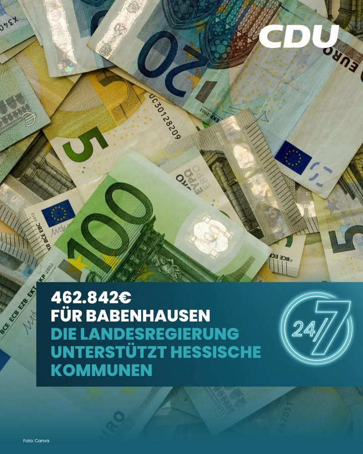 mehrHessen zahlt seinen Kommunen 300 Millionen Euro Soforthilfe aus. Babenhausen erhält hiervon eine Einmalzahlung in Höhe von 462.842 Euro. 💶 Heute bestellt, morgen geliefert: "Bereits in den kommenden Tagen zahlen wir aus", sagteFinanzminister Alexander Lorz (CDU) nach der Verabschiedung des Nachtragshaushalts für 2025 im Landtag.So schnell und unbürokratisch kann Hilfe gehen. Die Gemeinde Babenhausen kann die Soforthilfe so einsetzen, wie sie es braucht. Es gibt keine Vorgaben des Landes. 🚀Trotz einer angespannten Haushaltslage bleibt unsere Landesregierung ein verlässlicher Partner. Sie unterstützt uns als Gemeinde weiterhin dabei, unsere vielfältigen und anspruchsvollen Aufgaben zu erfüllen. 🏘️🤝🏻Mit den Kommunen stärkt das Land die Träger wesentlicher Infrastruktur. Ob Kitas, Schulen, Straßen, Vereine oder Feuerwehren - starke Kommunen gewährleisten das Funktionieren des Gemeinwesens vor Ort. 👷🏼♀️🏗️#soforthilfe #cduhessen #24/7
