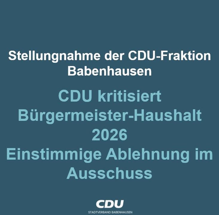 mehrStellungnahme der CDU-Fraktion BabenhausenCDU kritisiert Bürgermeister-Haushalt 2026 / Einstimmige Ablehnung im AusschussFraktion legt eigenes, genehmigungsfähiges Modell ohne drastische Steuererhöhung vorIn der jüngsten Sitzung des Haupt- und Finanzausschusses erhielt der von Bürgermeister Dominik Stadler vorgelegte Haushaltsentwurf 2026 keine einzige Ja-Stimme. Für Günther Eckert, Mitglied im Haupt- und Finanzausschuss, ist das ein deutliches Misstrauenssignal: "Dieser Haushalt zeigt weder Sparbereitschaft noch Verantwortung gegenüber den Bürgerinnen und Bürgern." Eine Zustimmung sei unmöglich gewesen, da der Bürgermeister erneut auf eine massive Erhöhung der Grundsteuer B gesetzt habe.Eigener Entwurf der CDU:Drei Tage später sollte das Stadtparlament über denselben Entwurf abstimmen ? Aussicht auf Zustimmung: gleich null. Die CDU handelte und erarbeitete Änderungsanträge, die einen genehmigungsfähigen Haushalt ermöglichen, ohne die Grundsteuer B von 540 v.H. auf 890 v.H., also um 65 Prozent anzuheben. Eckert betont: "Wir haben keine freiwilligen Leistungen angerührt. Vereinsförderung, Kinder- und Jugendförderung, das Schwimmbad und alle beschlossenen Investitionen bleiben bestehen."Korrekturen im Detail:Die CDU schlägt vor, die Grundsteuer B auf den Stand von 2024 zurückzuführen, da die Grundsteuerreform unerwartet zu Mindereinnahmen geführt habe. Bei den Personalaufwendungen soll der starke Anstieg gebremst werden. "Trotz unserer Kürzung steigen die Personalkosten gegenüber 2024 immer noch über 10 Prozent an", so Eckert. Auch die Sach- und Dienstleistungen sollen moderat angepasst werden, da der Entwurf hier eine überzogene Steigerung vorsah.Unklare Haltung der FDP:Die CDU hätte ihre Änderungen gerne in der Stadtverordnetenversammlung vorgestellt. Auf Wunsch der FDP wurde der Haushalt jedoch vertagt und erneut an den Finanzausschuss verwiesen ? verbunden mit der Idee einer Bürgerversammlung. "Wir sind gespannt, warum die FDP im Ausschuss gegen den Haushalt, aber für die drastische Erhöhung der Grundsteuer B gestimmt hat", erklärt Eckert.Weitere Beratung am 27. November:Für die CDU bleibt klar: Ein vom Bürgermeister eingebrachter Haushalt gehört in die Beratung der Ausschüsse und des Parlaments. Bürgerversammlungen machen aus Sicht der CDU nur dann Sinn, wenn ein Haushaltsentwurf vor den Beratungen in den Ausschüssen öffentlich vorgestellt wird, um Transparenz zu schaffen und die Akzeptanz zu erhöhen. Die CDU erwartet eine sachorientierte Diskussion in der nächsten Sitzung des Finanzausschusses.