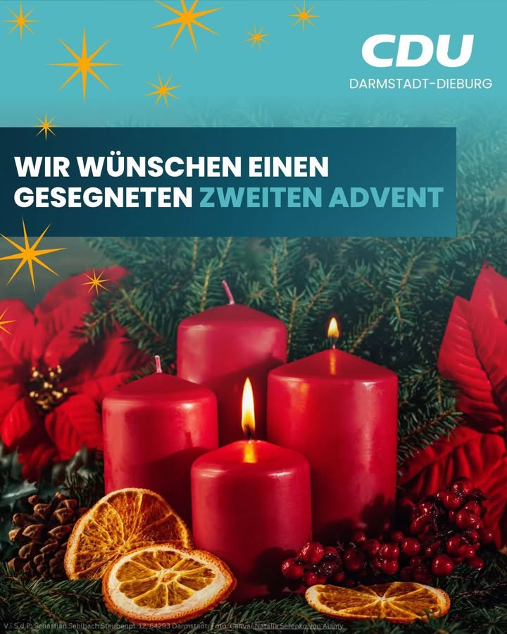 2. Advent ✨🕯️Die CDU Darmstadt-Dieburg wünscht einen gesegneten 2. Advent ? für Sie und Ihre Liebsten.Möge dieser Sonntag Ihnen Ruhe, Licht und Hoffnung schenken. 💫🕯️?#2Advent #Adventssonntag #Adventszeit #CDUDarmstadtDieburg #Gemeinsam Besinnlichkeit FroheAdventszeit